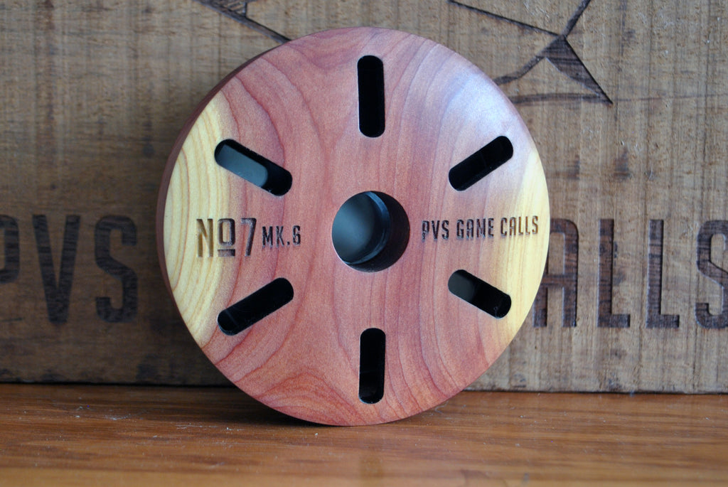 The N0.7 turkey pot calls features slate over glass. Available in red cedar with a durable oil finish. Comes with matching striker. Options for personal engraving on slate is available. Please contact us for more details.