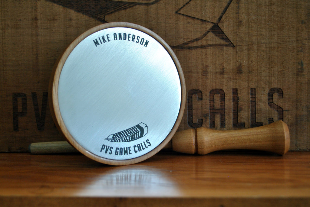 N0.7 Turkey Pot Call. Aluminum Over Glass - Cherry Wood Oil Finish